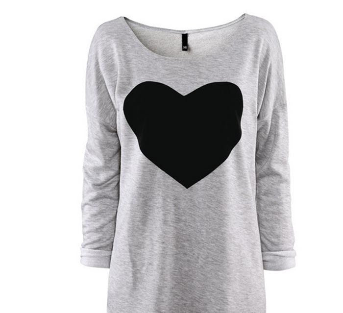 Fashion Women Love Heart Printed Long Sleeved Round Neck T-Shirt S